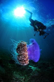Дайвинг на севере Приморья. Бухта Рудная. Гигантские медузы Цианея волосистая.