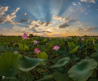 Рассвет над плантацией лотосов