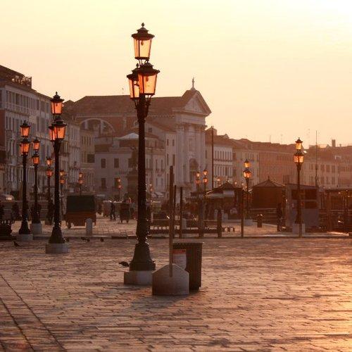 В вечерних сумерках.