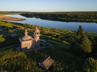 Село Кужба и закат над Вычегдой
