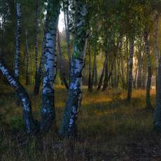 Роща в свете восходящего солнца
