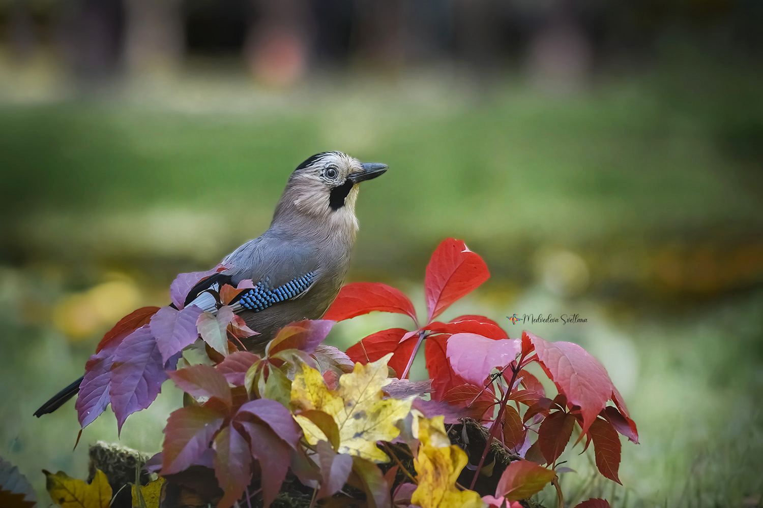 На фото сойка кавказского подвида, они у нас в чёрных шапочках.