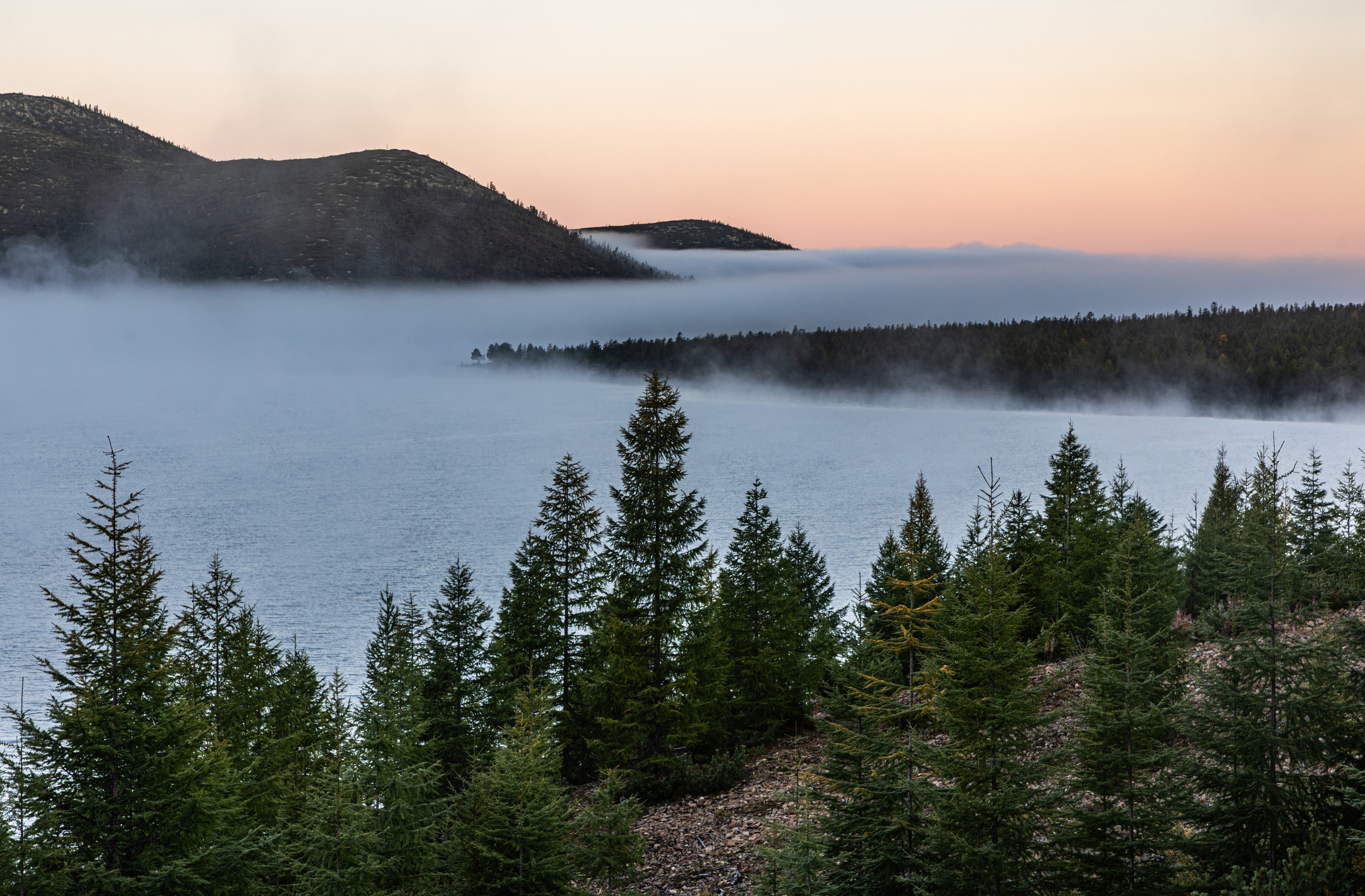 Туманное утро на озере Гранд. Колыма.