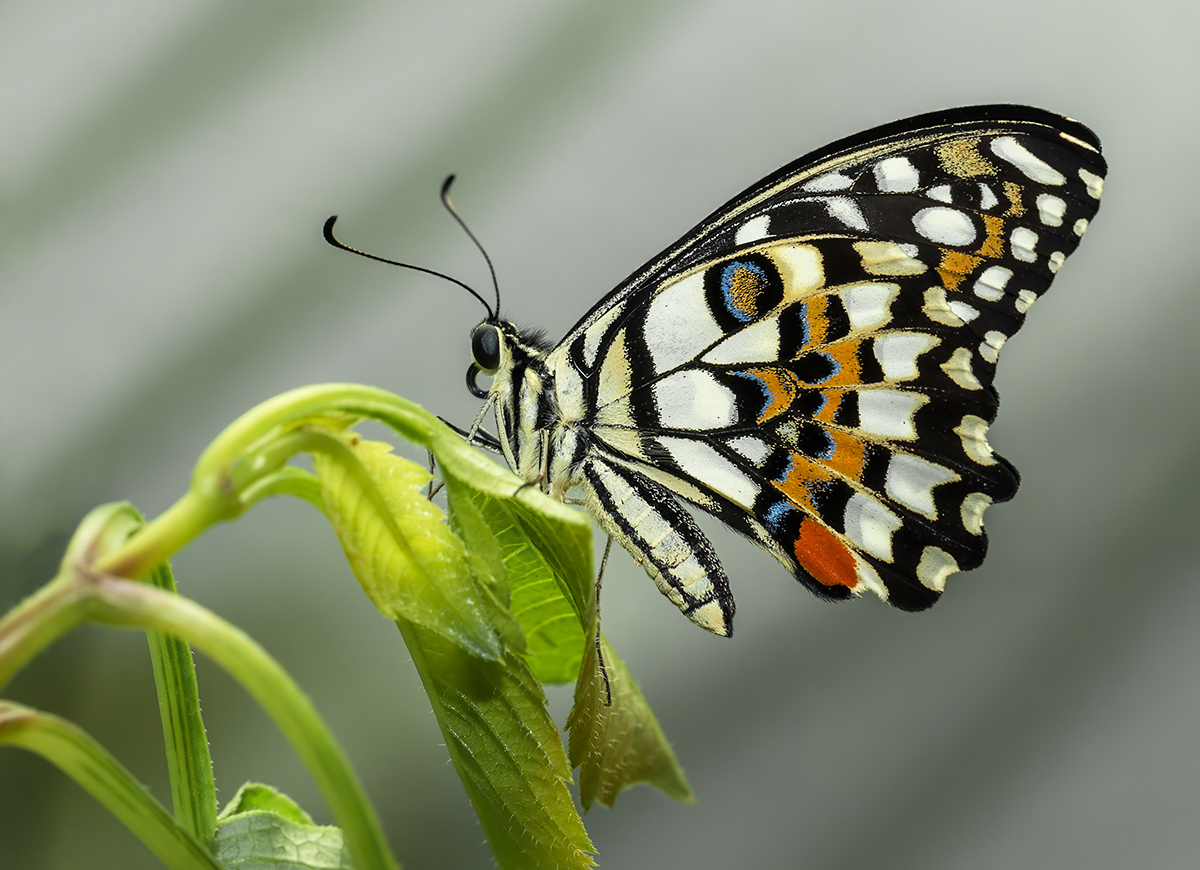 Парусник Papilio demoleus, на разных сайтах называемый Парусник Демолей, Лимонный парусник. Выведен из куколки в домашнем инсектарии. Макро-вспышка YongNuo YN24EX.