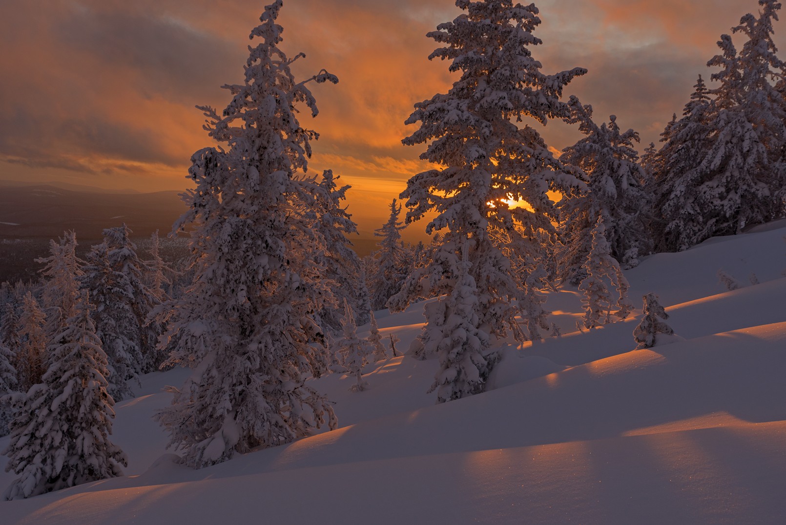 аргиджек, зима, закат, лес, снег, тени, сугробы, Мальцев Юрий
