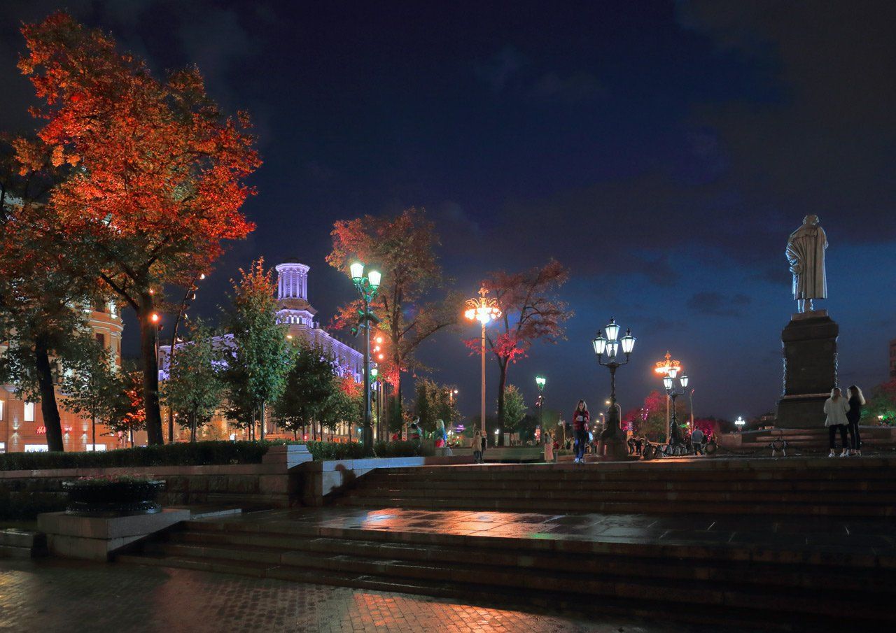 пушкинская площадь, пушкин, памятник, вечер, москва, подсветка, Виктор Климкин