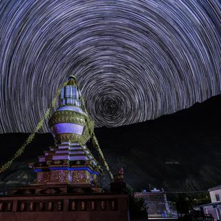 Star trails with Kaza Monastery