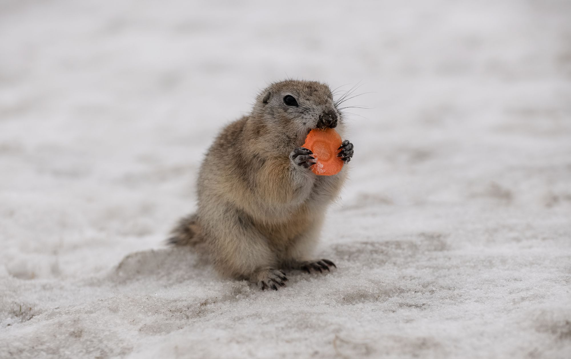 Суслики проснулись, по календарю весна, но снега кругом много..сколько угощения им принесли!