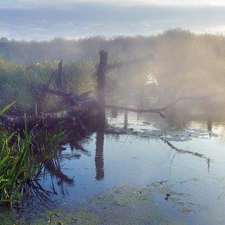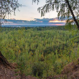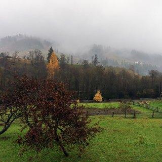 Горы, лес,небо, туман.