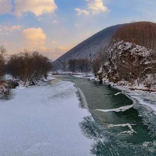 Приморье, бухта Рудная. Справа чуть виден мыс Бринера. Декабрь 2022