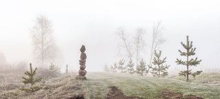 Foggy Frosty Morning in a Stone Garden